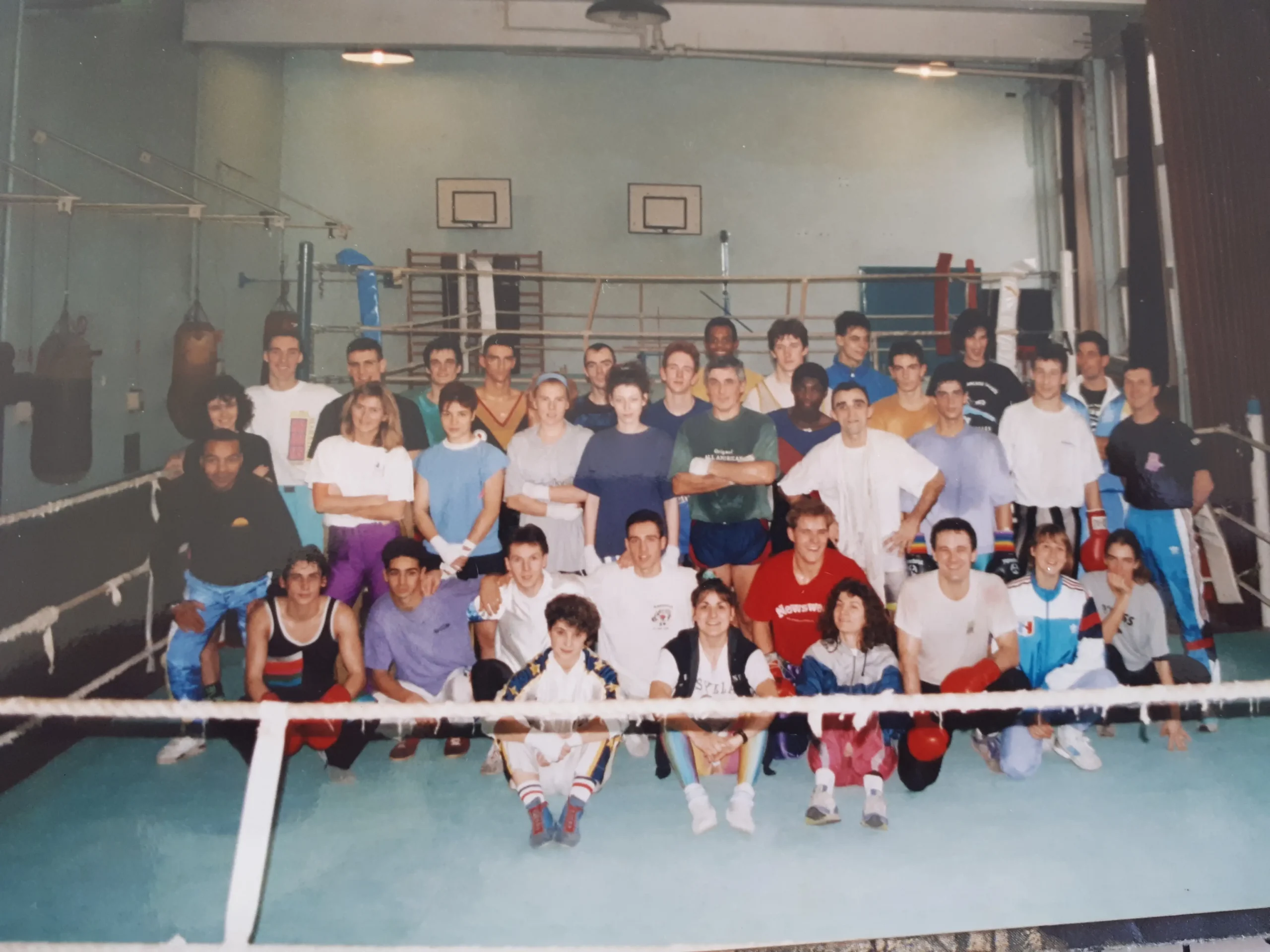 L’ équipe de France de Boxe Française Savate au grand complet à l’ INSEP en 1991. 3ème rang à droite t-shirt jaune. j’étais en compagnie de Richard Sylla entraîneur national. Bertrand soncourt Champion du monde . Bruno gottfrois Champion du monde ect… Mettre les gants au haut niveau international, m’a fait grandir dans mon apprentissage de la Boxe et du Sport en général.